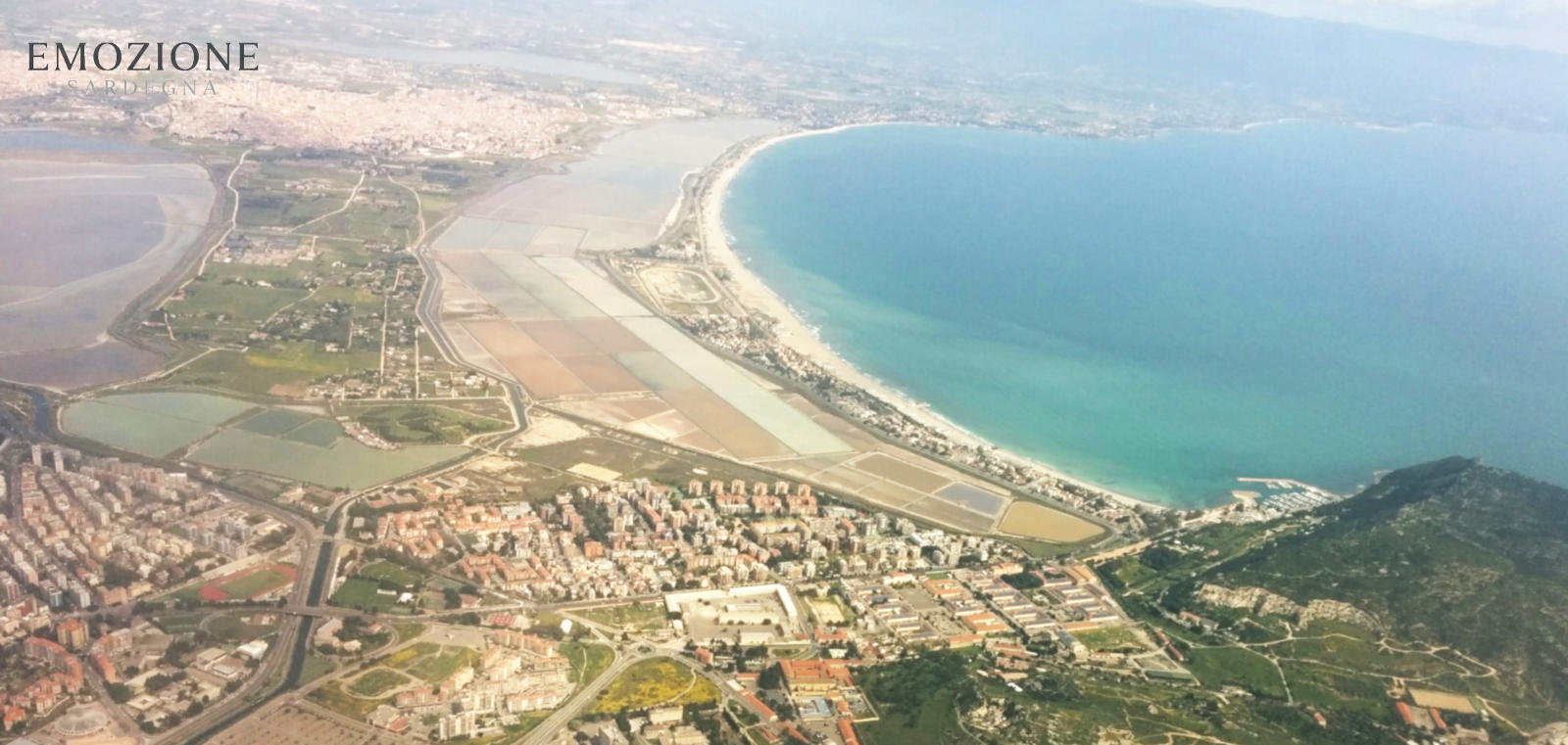 Vista aerea della spiaggia del Poetto e del Golfo degli Angeli – Emozione Sardegna
